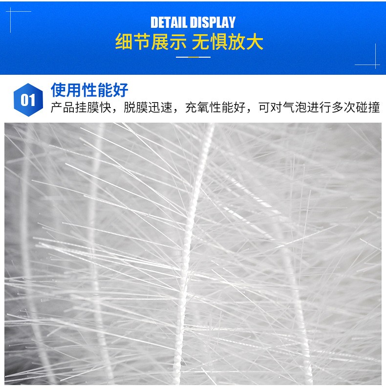 懸掛式立體彈性填料具有高活性,在填料表面生長(zhǎng)的微生物膜與填料流化碰撞,曝氣沖刷使微生物處于高活性,處理效果很好。選用聚酰胺 聚稀類等耐腐 奶高溫  耐老化材料,具有親水 吸附 抗熱等優(yōu)勢(shì)。